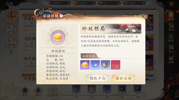 少侠等级达到24级后可以参与珍珑棋局玩法获取大量经验