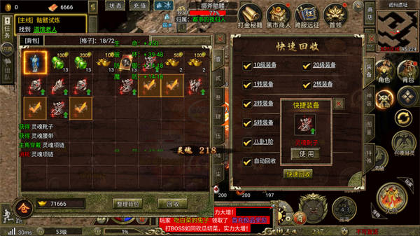 2. 装备元宝爆满屏:游戏中的装备和元宝掉落丰富,玩家可以通过不断挑战BOSS和完成任务获取大量装备和元宝,让你的角色变得更加强大。