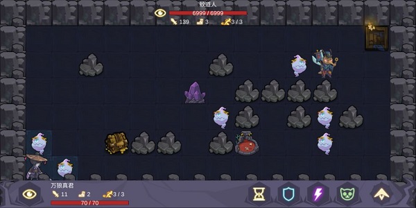 30层:如果boss是长公主,先把小怪打完,拿墓碑,然后就每回合打一下召唤一个老鼠挨打,每回合会被boss打一下,如果触发反击的次数多护盾不够,那你就没了。如果boss是军师长眉,那就谁近先打谁,打boss的时候还是打一下召唤一个老鼠挨打