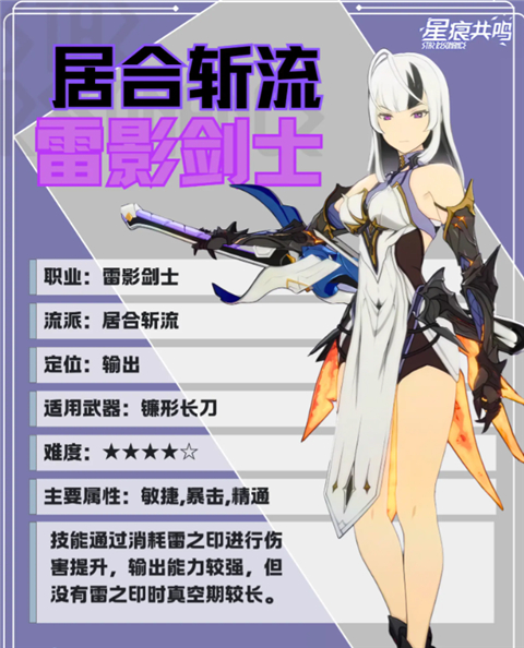 一闪和飞雷神通过派生强化后的技能伤害也较为可观,也可作为主要输出技能。居合流更适合单体例如BOSS类短时间内打出单体高爆发。