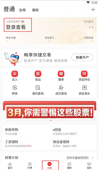 1、在本站下载招商证券,进入软件,进入交易界面,点击登录查看;