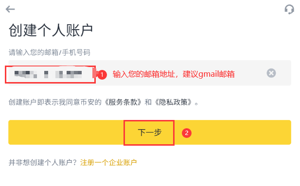 阅读并同意《服务条款》与《隐私政策》,然后点击【创建个人账户】。