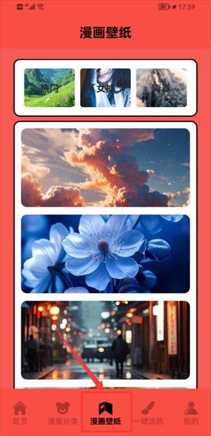 4、切换到漫画壁纸专区,就能浏览各种风格的壁纸并加以使用。